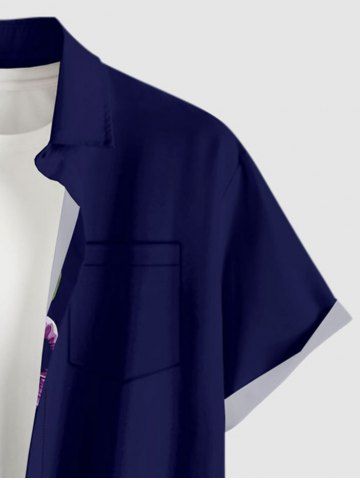 Plus Size Flower Leaf Branch Print Hawaii Button Pocket Shirt For Men - Concord - Xl
