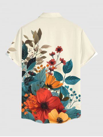 Short Sleeves Shirts > Plus Size Flower Leaf Branch Print Hawaii Button Pocket Shirt For Men
