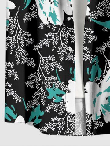 Plus Size Flower Leaf Branch Print Hawaii Button Pocket Shirt For Men - Black - S