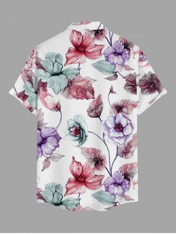 Plus Size Flower Leaf Branch Print Hawaii Button Pocket Shirt For Men - White - M