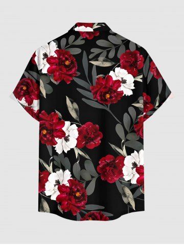 Plus Size Flower Leaf Branch Print Hawaii Button Pocket Shirt For Men - Black - 5xl