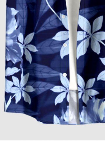 Plus Size Flower Leaf Branch Print Hawaii Button Pocket Shirt For Men - Deep Blue - 3xl