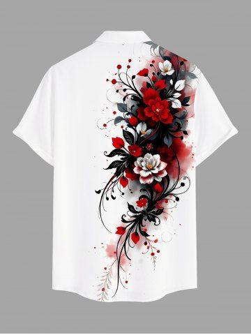 Plus Size Flower Leaf Branch Tie Dye Print Hawaii Button Pocket Shirt For Men - White - S