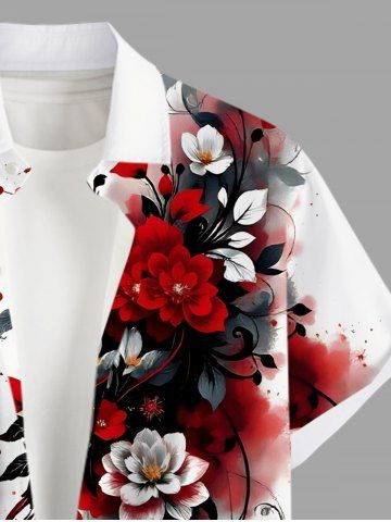 Plus Size Flower Leaf Branch Tie Dye Print Hawaii Button Pocket Shirt For Men - White - M