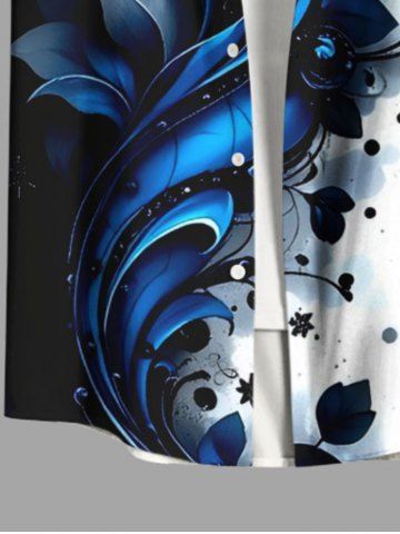 Plus Size Flower Leaf Contrast Print Hawaii Button Pocket Shirt For Men - Black - 2xl