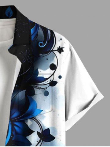 Short Sleeves Shirts > Plus Size Flower Leaf Contrast Print Hawaii Button Pocket Shirt For Men
