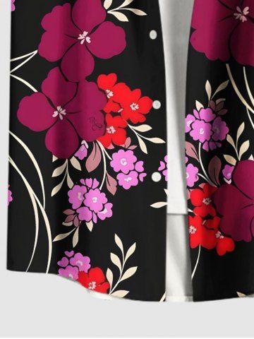 Plus Size Flower Leaf Curve Branch Print Hawaii Button Pocket Shirt For Men - Red - Xl