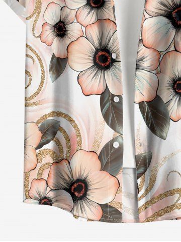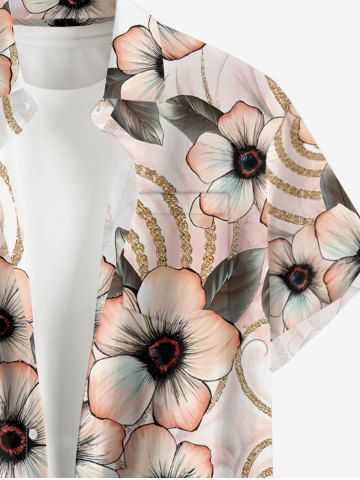 Plus Size Flower Leaf Curve Print Hawaii Button Pocket Shirt For Men - Rose - 5xl