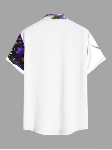 Plus Size Flower Leaf Glitter Sequins Print Hawaii Button Pocket Shirt For Men - White - 5xl