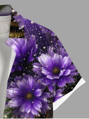 Short Sleeves Shirts > Plus Size Flower Leaf Glitter Sequins Print Hawaii Button Pocket Shirt For Men