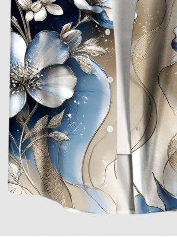 Plus Size Flower Leaf Ombre Print Hawaii Button Pocket Shirt For Men - Light Brown - L