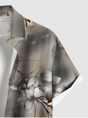 Plus Size Flower Leaf Ombre Print Hawaii Button Pocket Shirt For Men - Light Brown - M