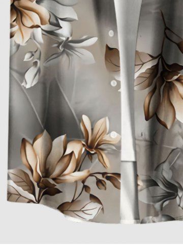 Plus Size Flower Leaf Ombre Print Hawaii Button Pocket Shirt For Men - Light Brown - 2xl