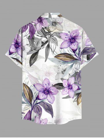 Plus Size Flower Leaf Ombre Print Hawaii Button Pocket Shirt For Men - Purple - M