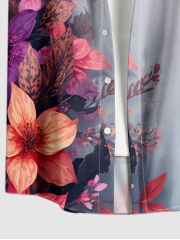 Short Sleeves Shirts > Plus Size Flower Leaf Ombre Print Hawaii Button Pocket Shirt For Men