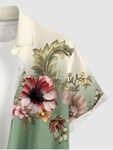 Plus Size Flower Leaf Ombre Print Hawaii Button Pocket Shirt For Men - Light Green - L