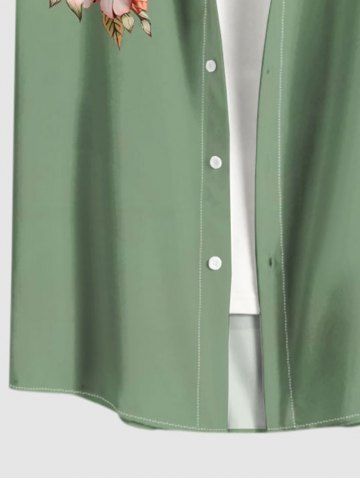 Plus Size Flower Leaf Ombre Print Hawaii Button Pocket Shirt For Men - Light Green - Xl