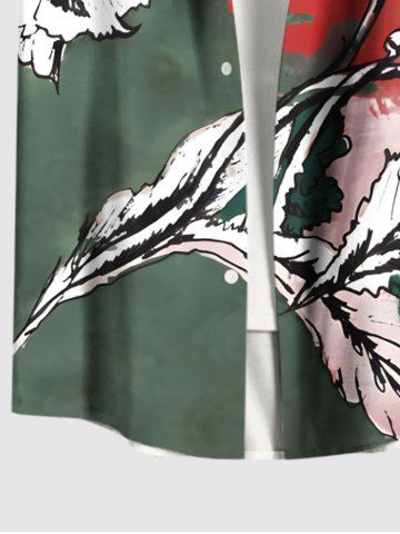 Plus Size Flower Leaf Painting Print Hawaii Button Pocket Shirt For Men - Green - L