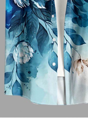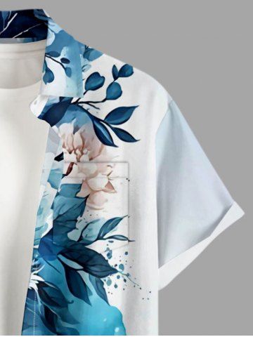 Plus Size Flower Leaf Painting Splatter Print Buttons Pocket Hawaii Shirt For Men - White - M