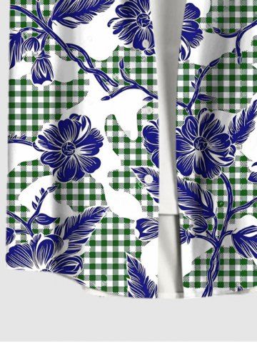 Plus Size Flower Leaf Plaid Print Hawaii Button Pocket Shirt For Men - Multi-a - S