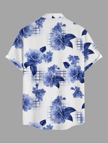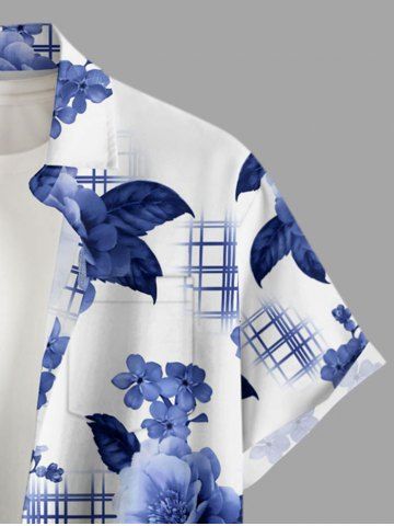 Plus Size Flower Leaf Plaid Print Hawaii Button Pocket Shirt For Men - Blue - 5xl