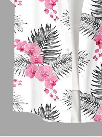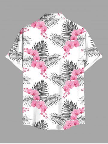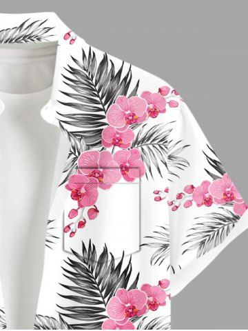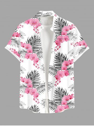 Plus Size Flower Leaf Print Buttons Pocket Hawaii Shirt For Men - Hot Pink - S