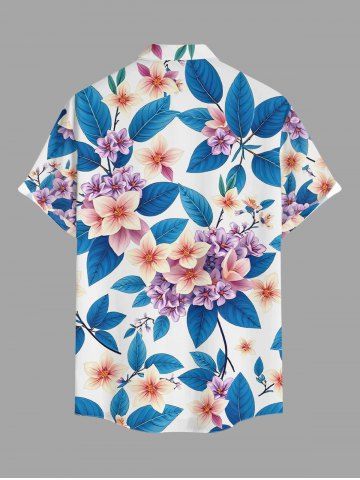 Plus Size Flower Leaf Print Buttons Pocket Hawaii Shirt For Men - Blue - M