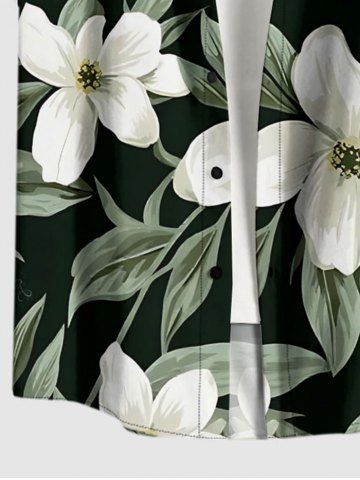 Plus Size Flower Leaf Print Buttons Pocket Hawaii Shirt For Men - Deep Green - 5xl