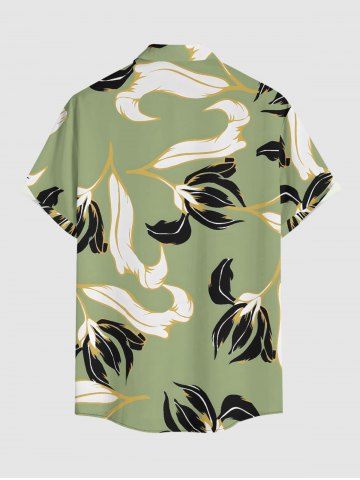 Plus Size Flower Leaf Print Buttons Pocket Hawaii Shirt For Men - Light Green - 2xl
