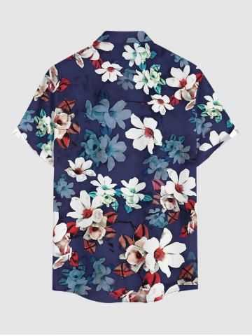 Plus Size Flower Leaf Print Buttons Pocket Hawaii Shirt For Men - Cadetblue - 3xl