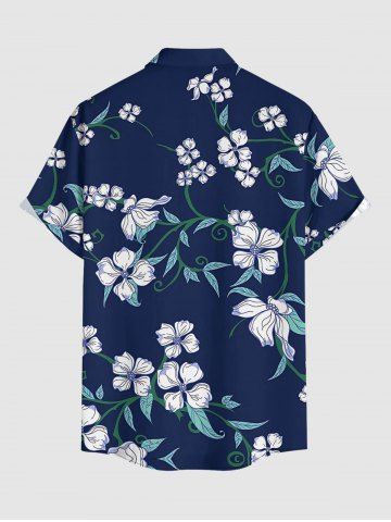 Plus Size Flower Leaf Print Buttons Pocket Hawaii Shirt For Men - Deep Blue - M