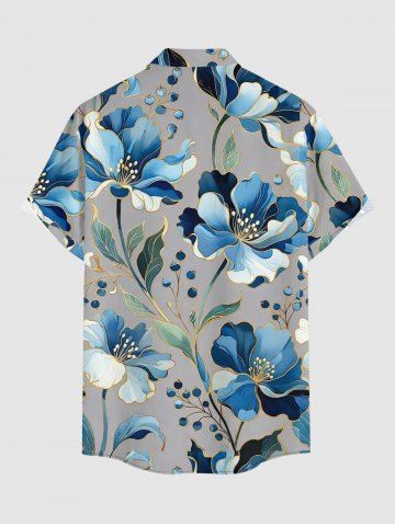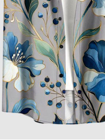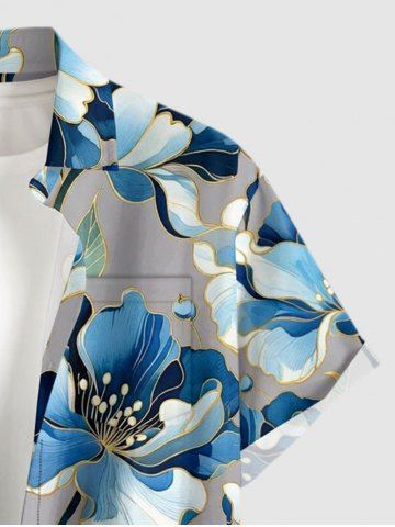 Plus Size Flower Leaf Print Buttons Pocket Hawaii Shirt For Men - Dark Gray - L