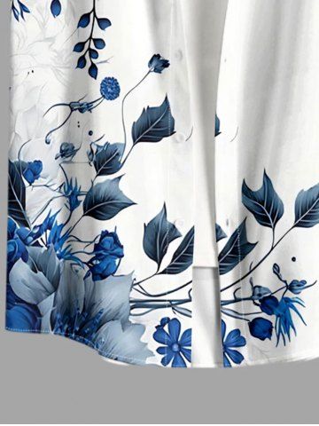 Plus Size Flower Leaf Print Buttons Pocket Hawaii Shirt For Men - Blue - S