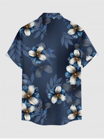 Plus Size Flower Leaf Print Buttons Pocket Hawaii Shirt For Men - Blue Gray - 4xl