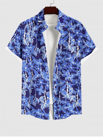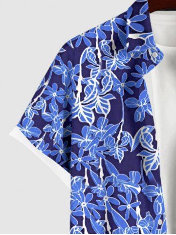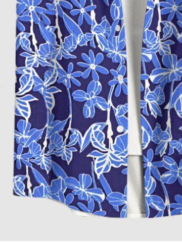Plus Size Flower Leaf Print Hawaii Button Pocket Shirt For Men - Blue - 4xl
