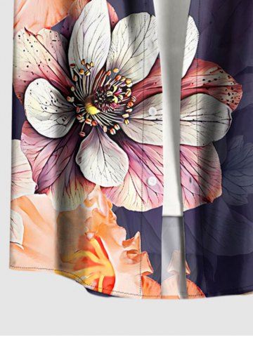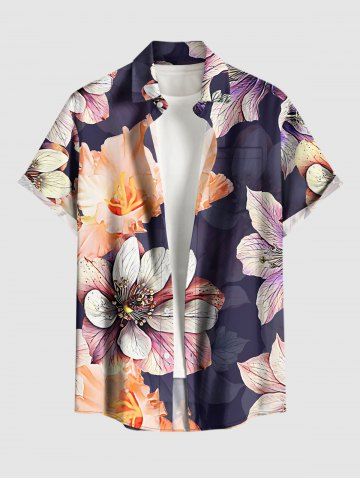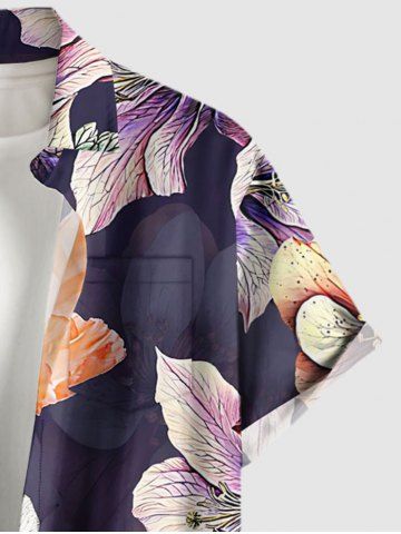 Plus Size Flower Leaf Print Hawaii Button Pocket Shirt For Men - Concord - 3xl