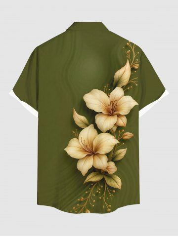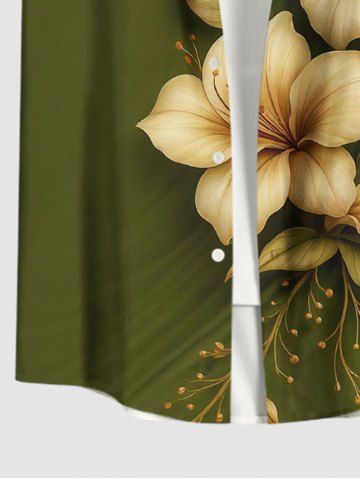 Plus Size Flower Leaf Print Hawaii Button Pocket Shirt For Men - Green - Xl