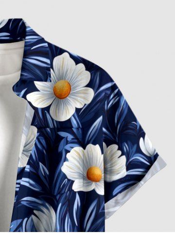 Short Sleeves Shirts > Plus Size Flower Leaf Print Hawaii Button Pocket Shirt For Men
