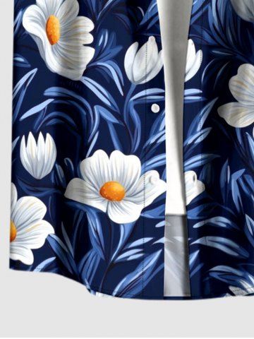 Plus Size Flower Leaf Print Hawaii Button Pocket Shirt For Men - Blue - 6xl