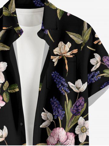 Plus Size Flower Leaf Print Hawaii Button Pocket Shirt For Men - Black - 6xl