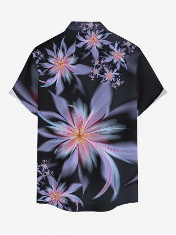 Plus Size Flower Leaf Print Hawaii Button Pocket Shirt For Men - Purple - L