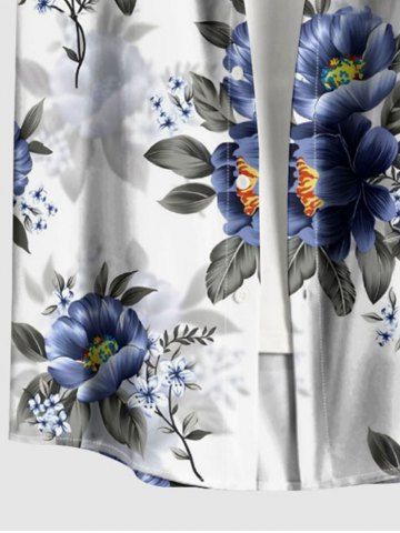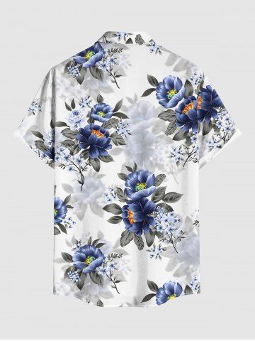 Plus Size Flower Leaf Print Hawaii Buttons Pocket Shirt For Men - White - S