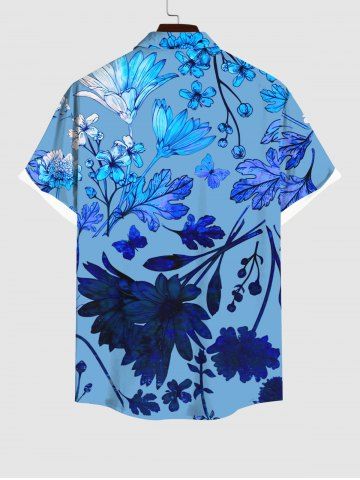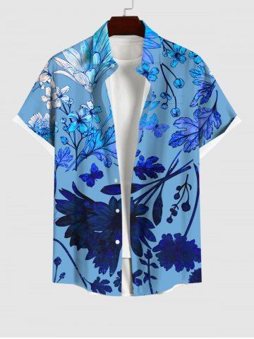 Plus Size Flower Leaf Print Hawaii Ombre Buttons Pocket Shirt For Men - Blue - Xl