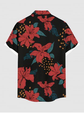 Plus Size Flower Leaf Spotted Print Hawaii Button Pocket Shirt For Men - Black - 6xl