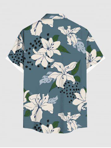 Short Sleeves Shirts > Plus Size Flower Leaf Spotted Print Hawaii Button Pocket Shirt For Men