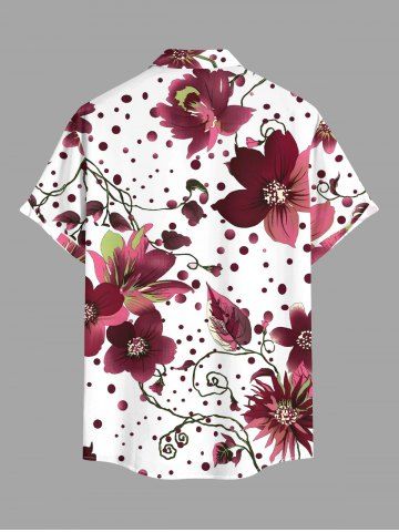 Plus Size Flower Leaf Spotted Print Hawaii Button Pocket Shirt For Men - White - L