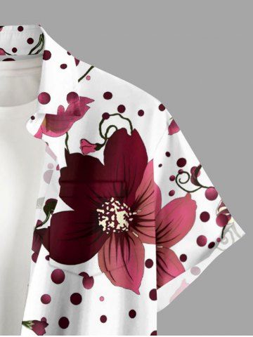 Short Sleeves Shirts > Plus Size Flower Leaf Spotted Print Hawaii Button Pocket Shirt For Men