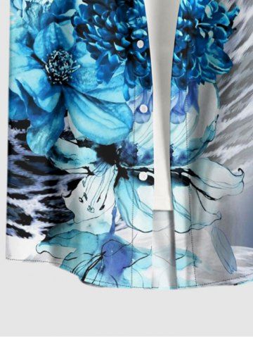 Plus Size Flower Leopard Ombre Print Hawaii Button Pocket Shirt For Men - Blue - L