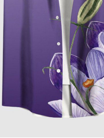 Plus Size Flower Ombre Print Hawaii Button Pocket Shirt For Men - Purple - 2xl