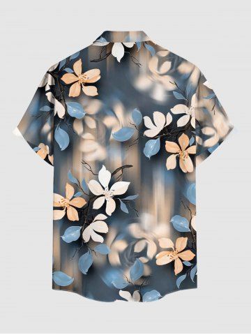 Plus Size Flower Ombre Print Hawaii Button Pocket Shirt For Men - Blue Gray - 2xl